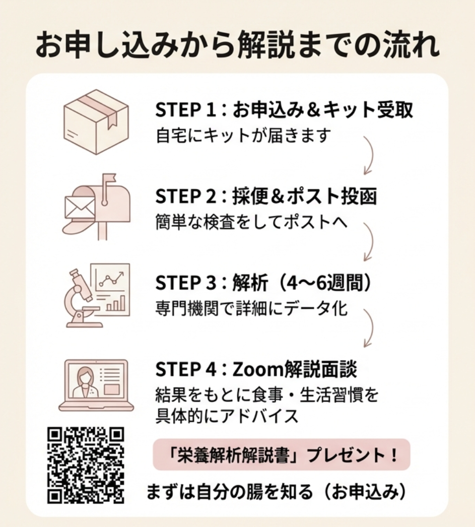 この解析結果をスタートとし、無理なく継続的に腸活に取り組んでいただける内容です。
